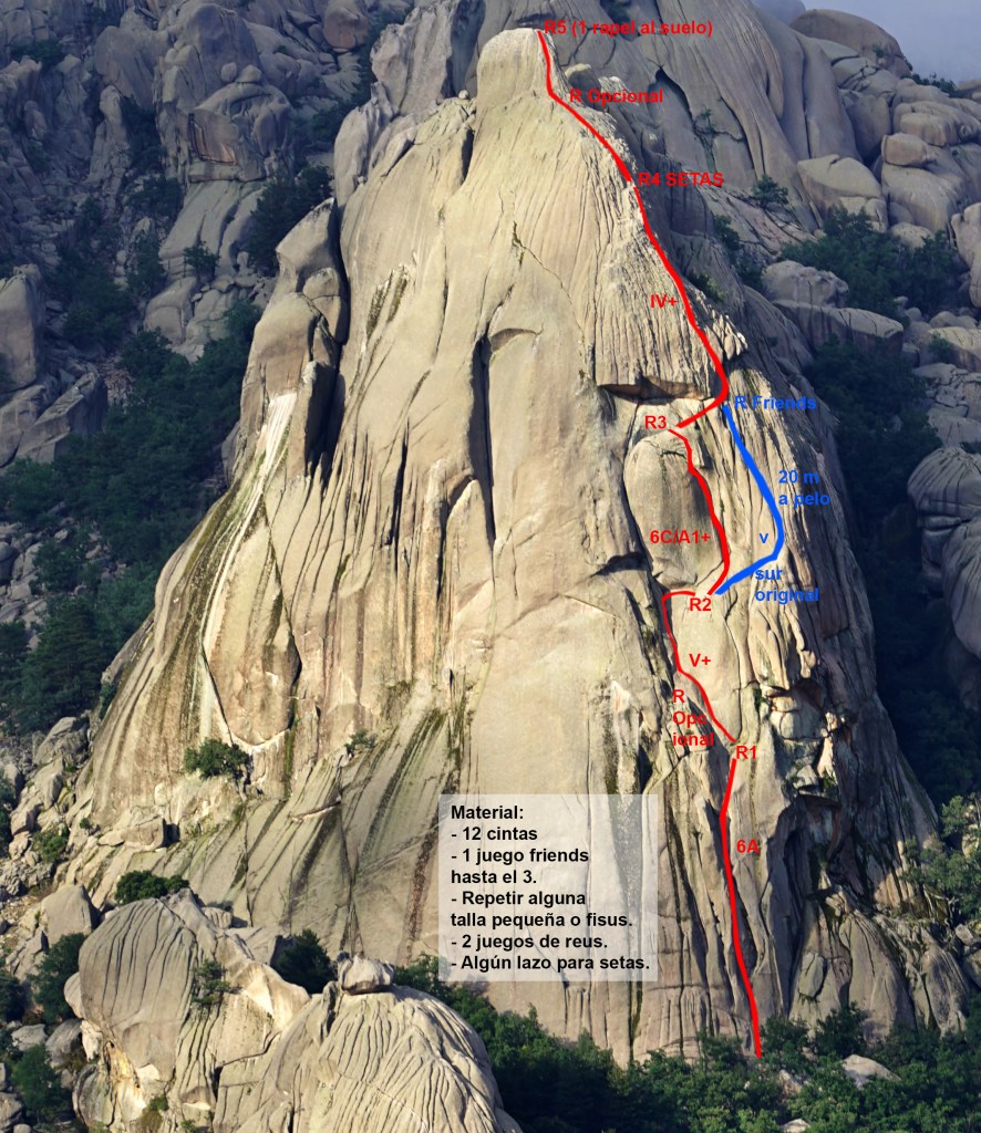 La vía Sur y Sur directa del Pájaro de La Pedriza es una de las grandes vías de escalada clásica que hay en Madrid y en todo el Territorio español. Nada tiene que envidiar al Torreón de los Galayos o a su hermano mayor Picu Urriellu.