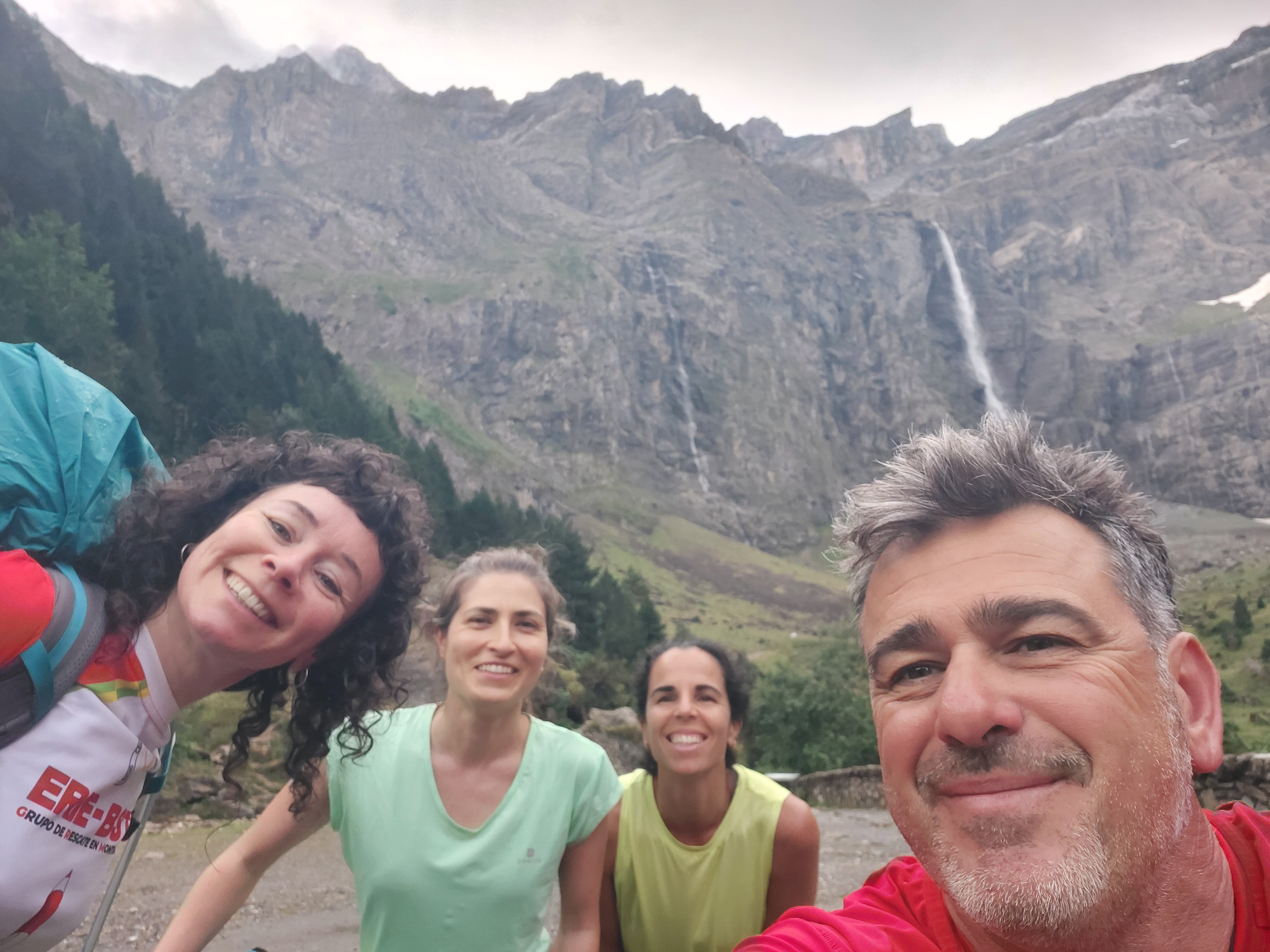 Salimos del Refugio de Espuguettes dirección pueblo de Gavarnie y, como en 45 minutos hay una bifurcación justo a la altura de un refugio campamento de chavales franceses.