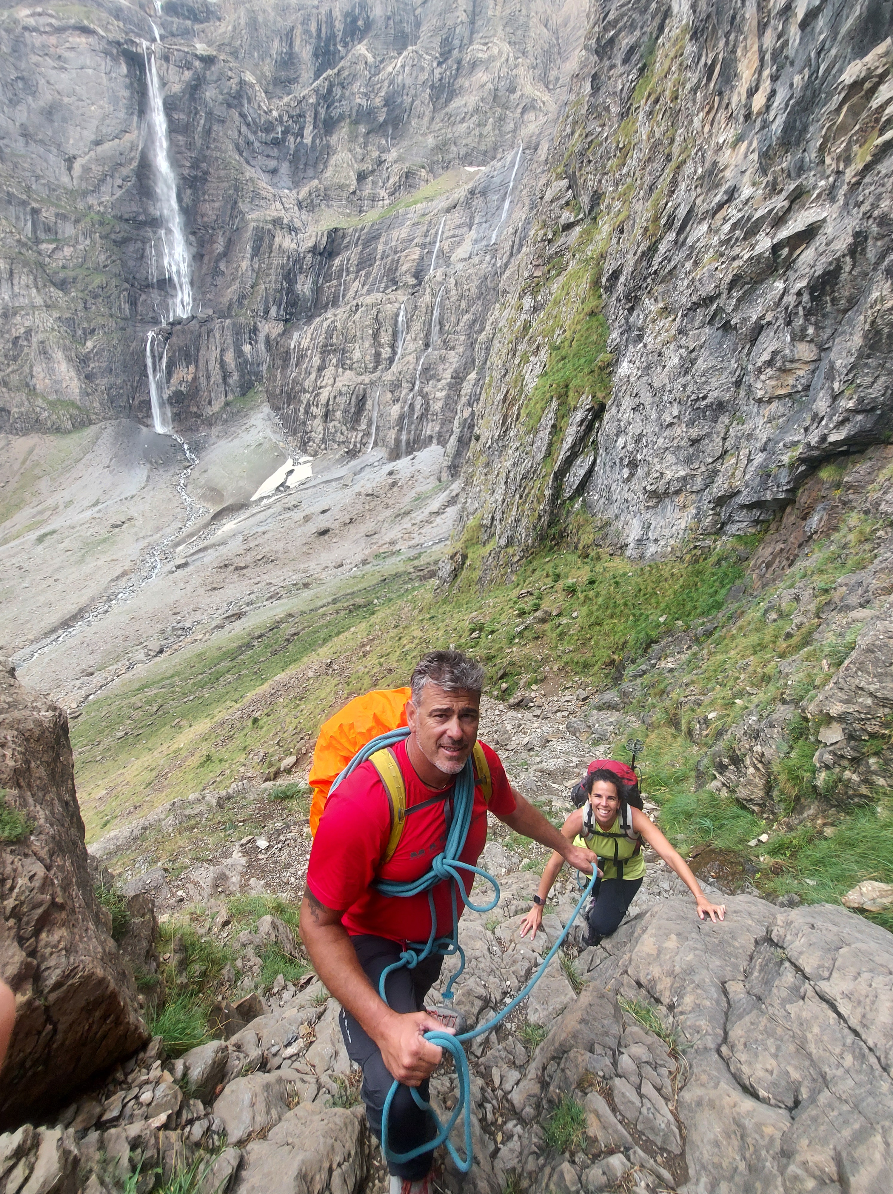 Una vez en la Cascada vamos a ir a buscar el paso que mediante una serie de trepadas de segundo grado nos va a conducir hacia el «Refugio de Serradets» y la «Brecha de Rolando». Este paso queda muy a la derecha de la Cascada (mirando al Circo) pegado a la pared y tiene unas marcas pintadas que nos guiarán sin mucha más perdida. En el Refugio de Serradets hacemos la segunda noche del camino con la opción de subir y bajar el Taillón, una montaña de 3.144 m que nos incrementará unas 3 horas más de la ruta del día.